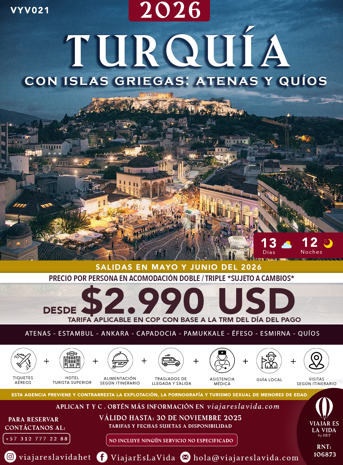 TURQUÍA CON ISLAS GRIEGAS: ATENAS Y QUÍOS MAYO Y JUNIO 2026 VYV:021