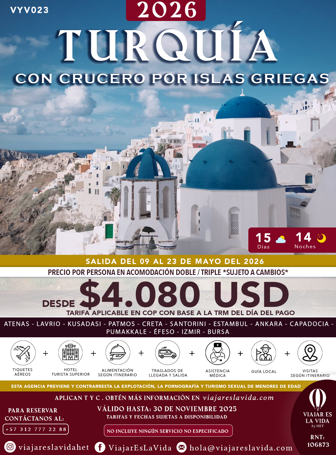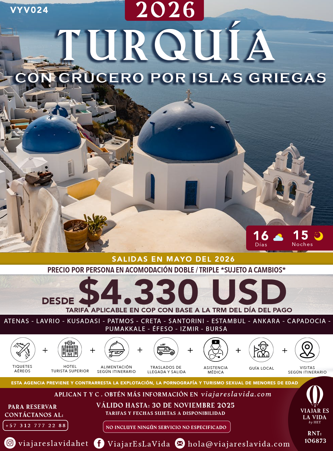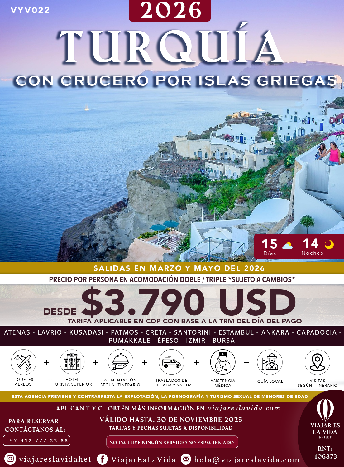 TURQUÍA CON CRUCERO POR ISLAS GRIEGAS MAYO 2026 VYV:024