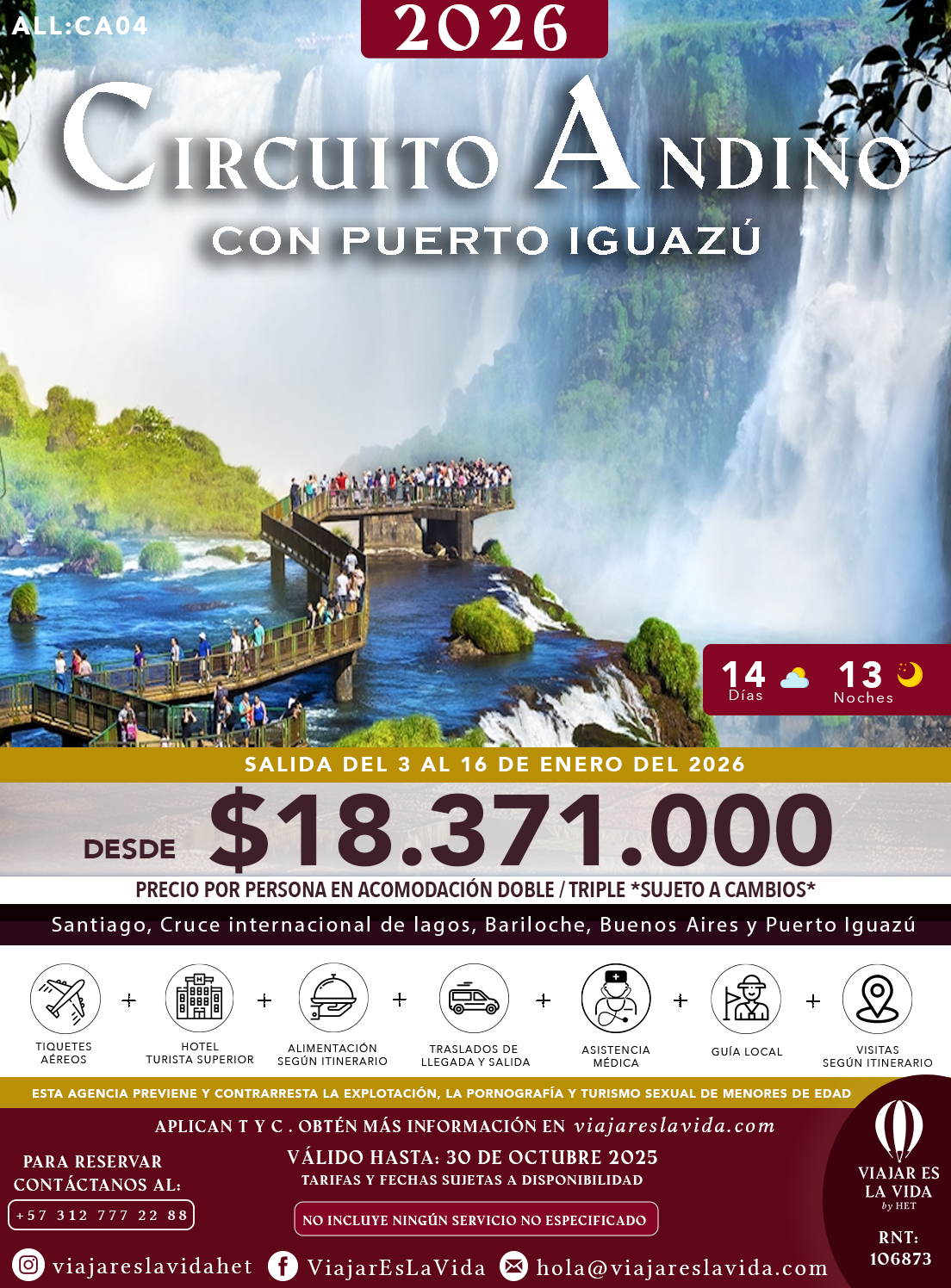 CIRCUITO ANDINO CON IGUAZÚ 2026 (14D 13N) ALL:CA04