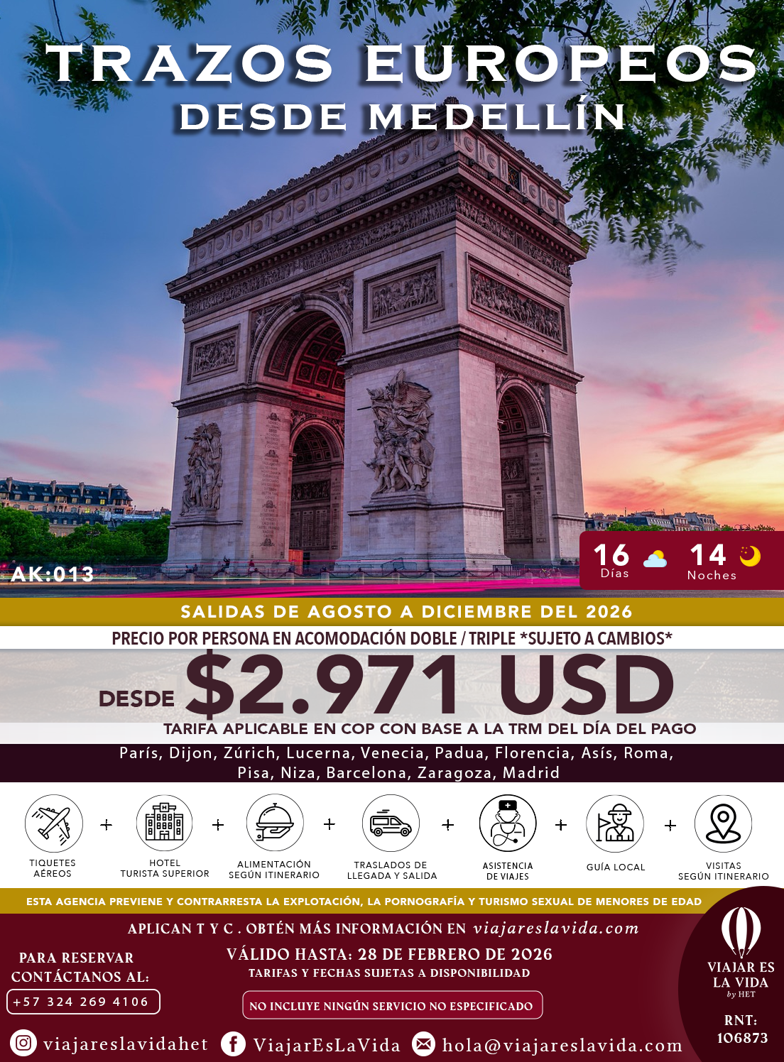 TRAZOS EUROPEOS DESDE MEDELLÍN AK013