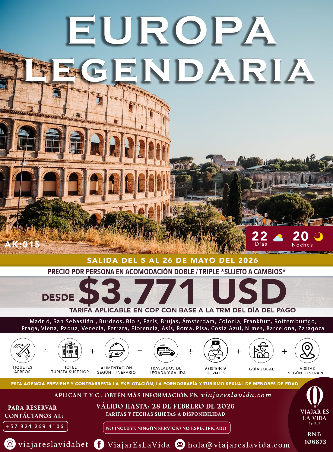 EUROPA LEGENDARIA MAYO DESDE BOGOTÁ 2026 AK015