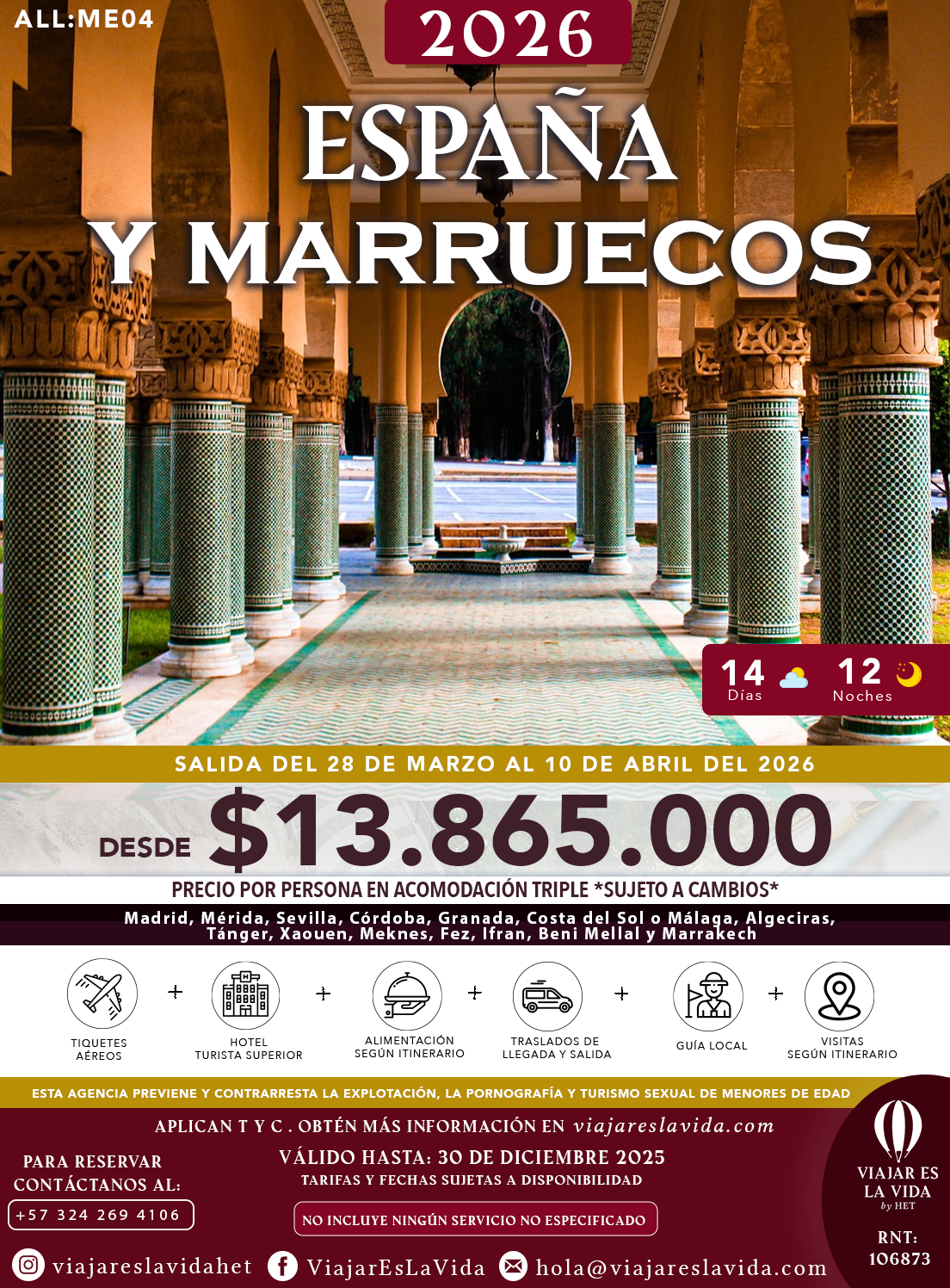 RUTA DE CULTURAS: ESPAÑA Y MARRUECOS SEMANA SANTA 2026 ALL:ME04