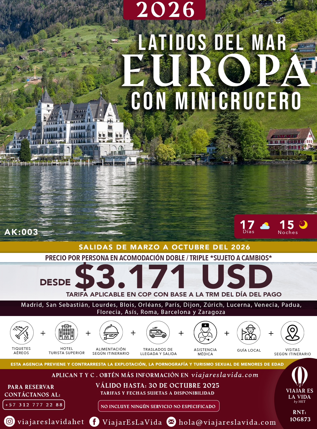 LATIDOS DEL MAR EUROPA CON MINICRUCERO DESDE BOGOTÁ 2026 AK002