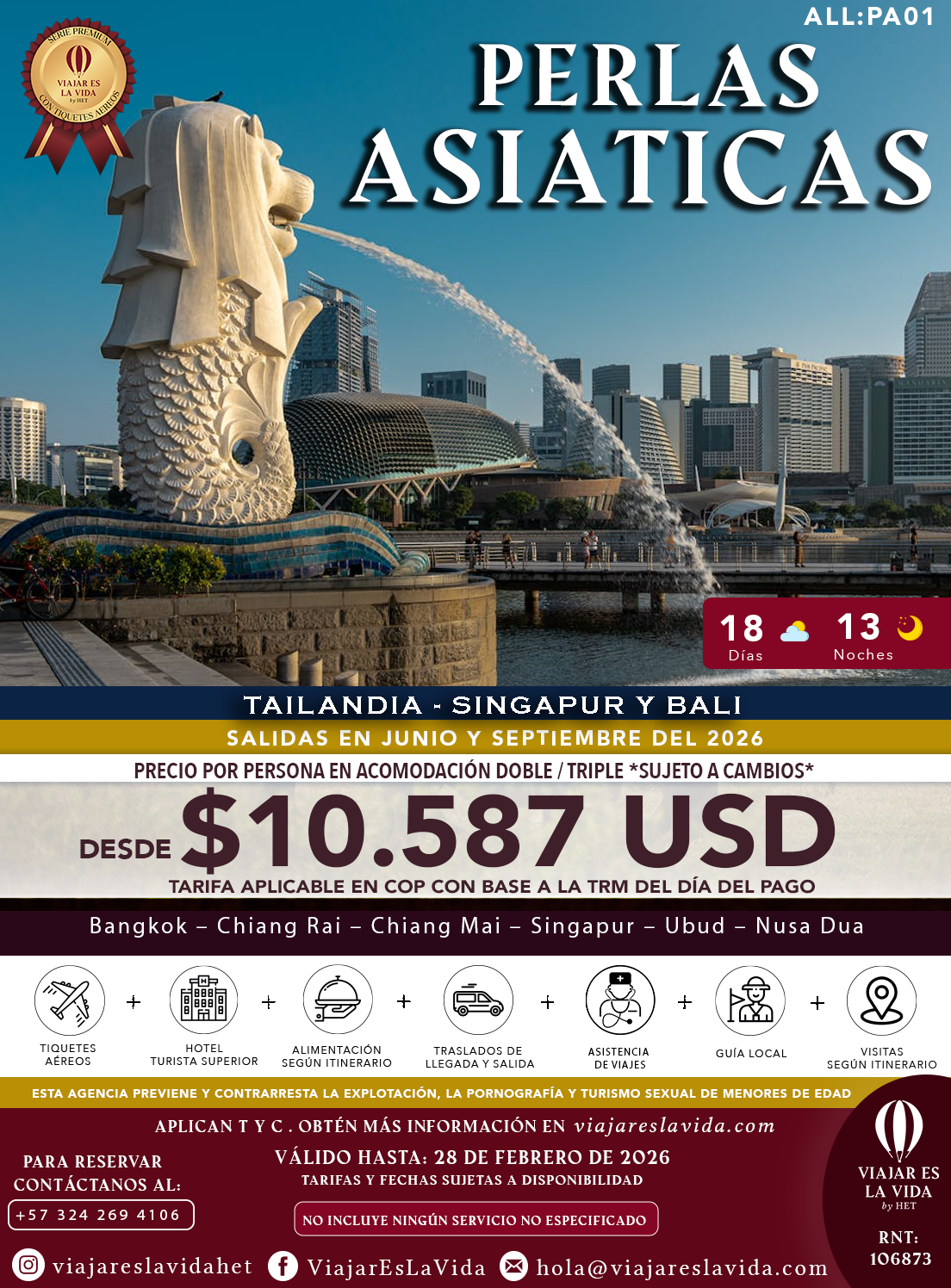 PERLAS ASIATICAS: TAILANDIA, SINGAPUR Y BALI JUNIO Y SEPTIEMBRE – SERIE PREMIUM ALL:PA01