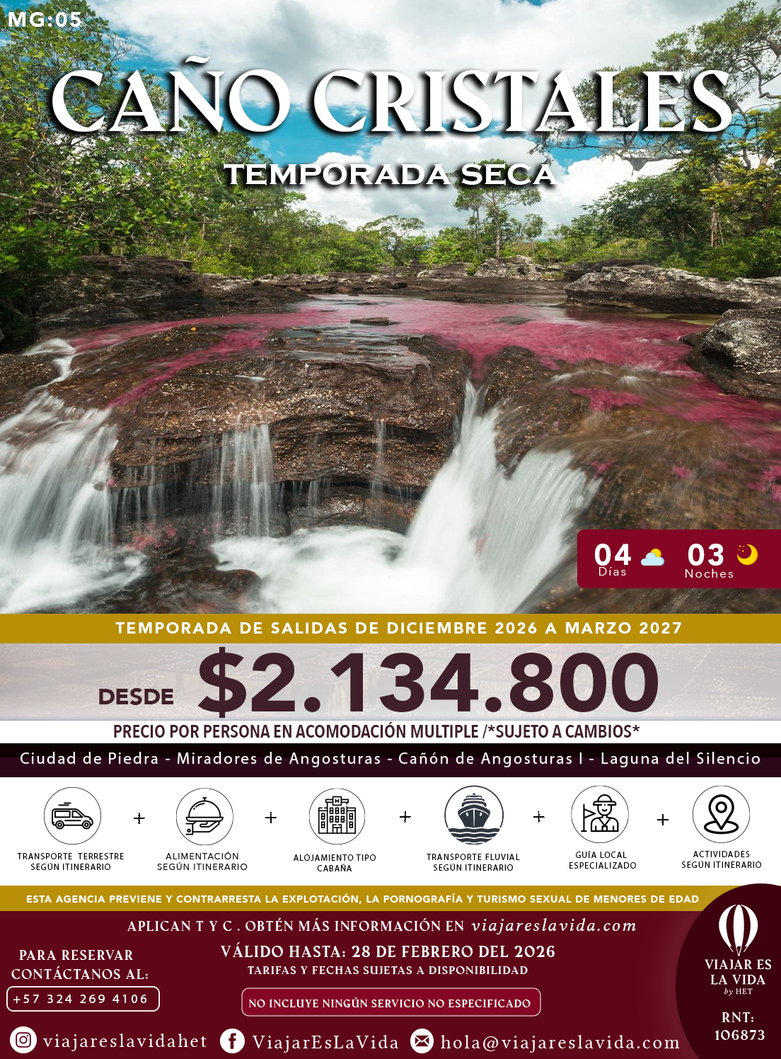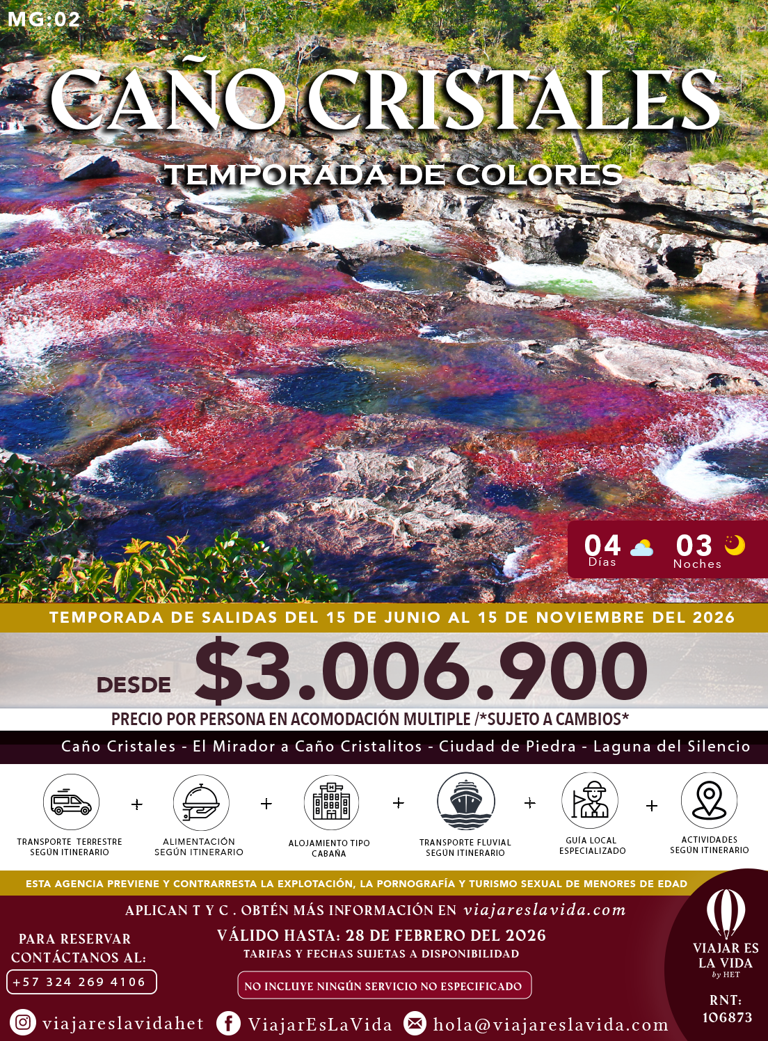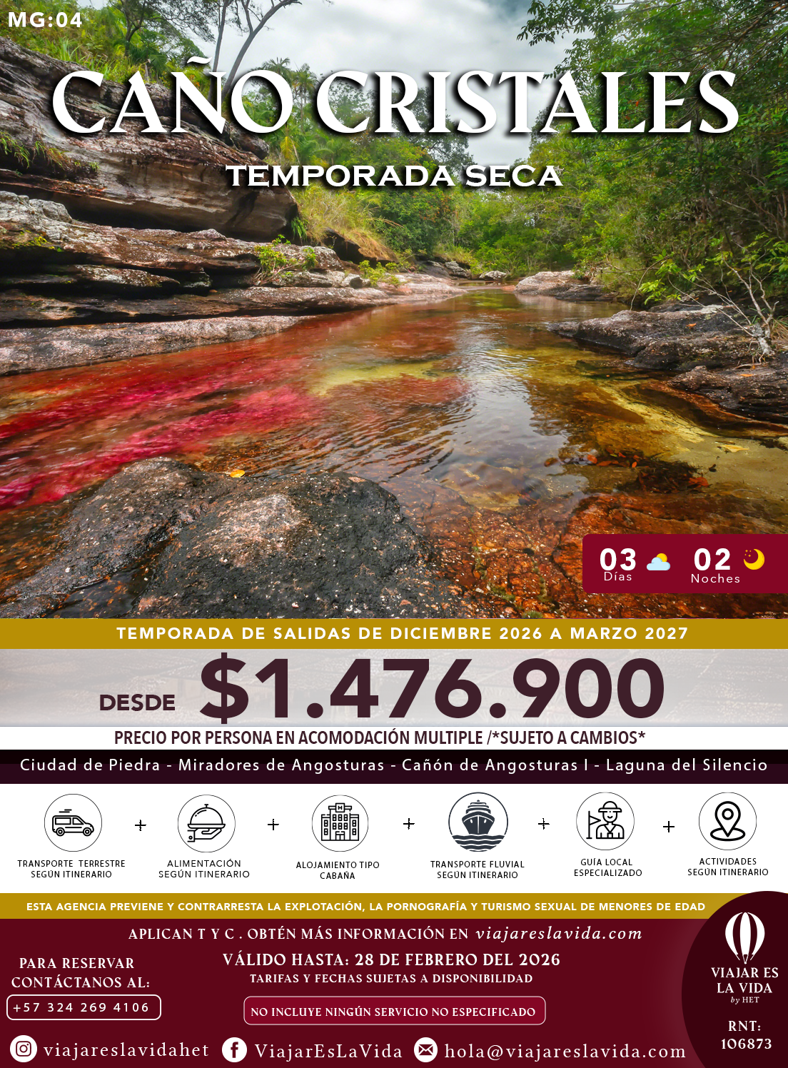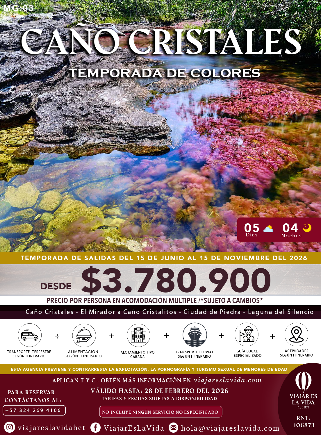 CAÑO CRISTALES TEMPORADA DE COLOR 5DÍAS 4NOCHES MG:03