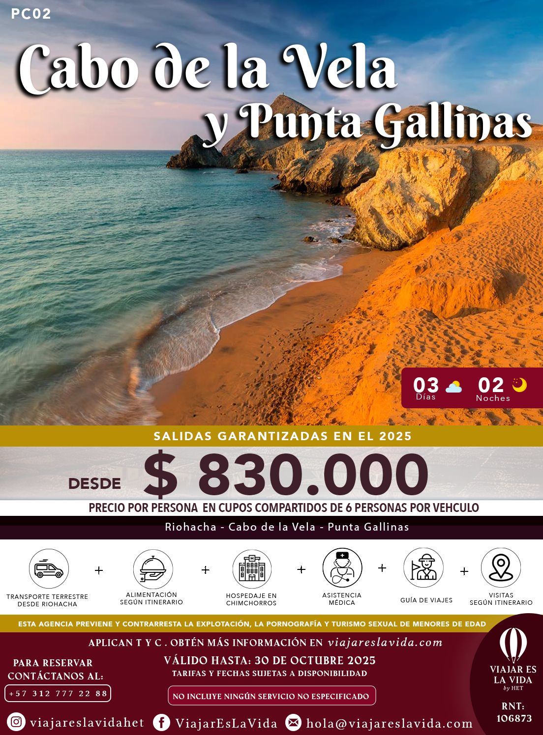 CABO DE LA VELA PUNTA GALLINAS Y CAMARONES CP01
