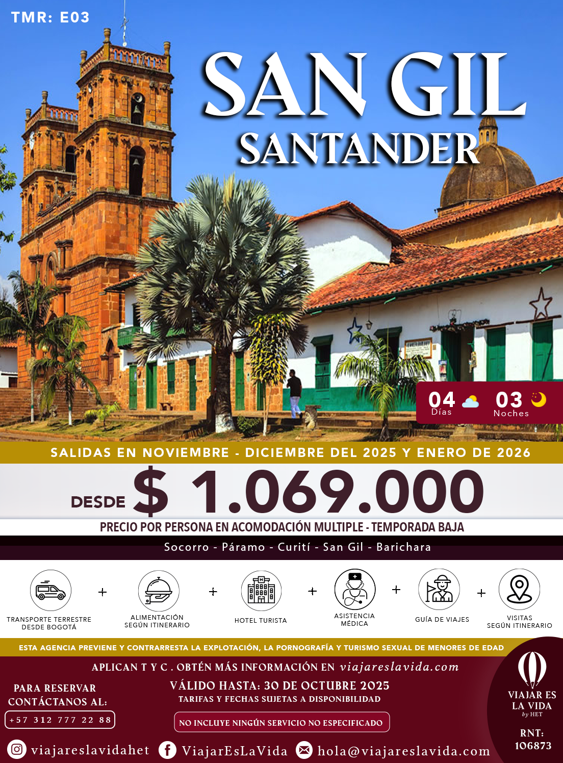 SAN GIL (SANTANDER) (4D 3N) TMR:E03