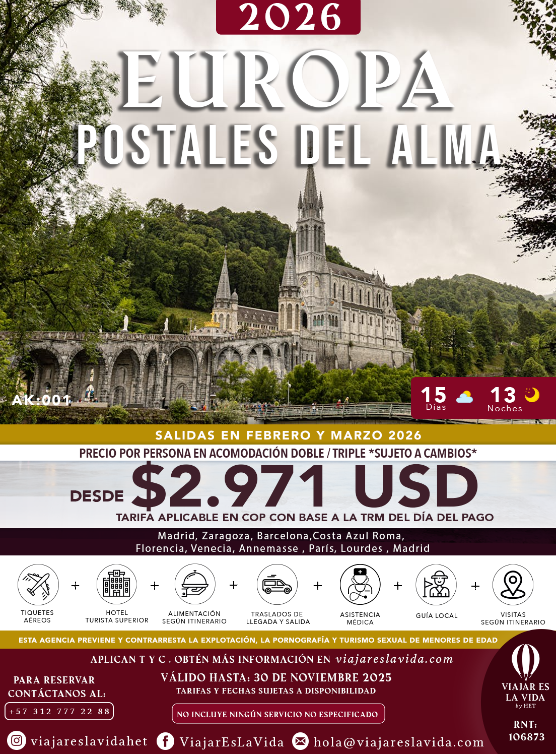 EUROPA POSTALES DEL ALMA SALIENDO DESDE MEDELLÍN 2026 AK001