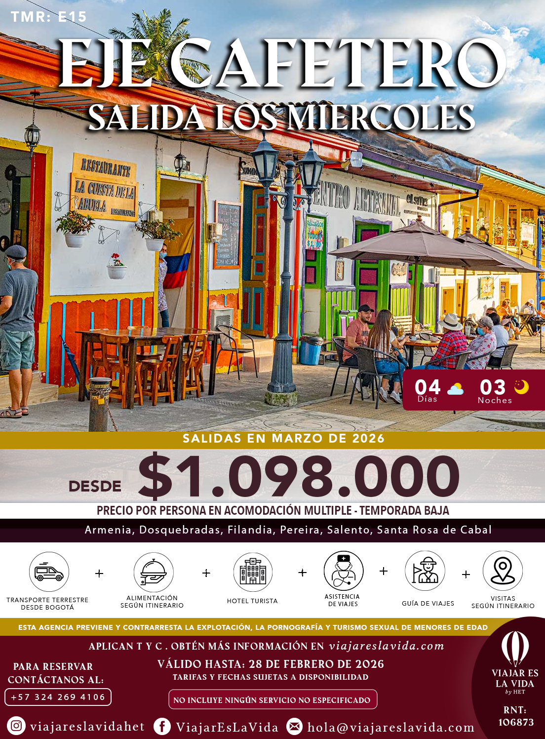EJE CAFETERO 2026 MARZO SALIDAS MIÉRCOLES TMR:E15