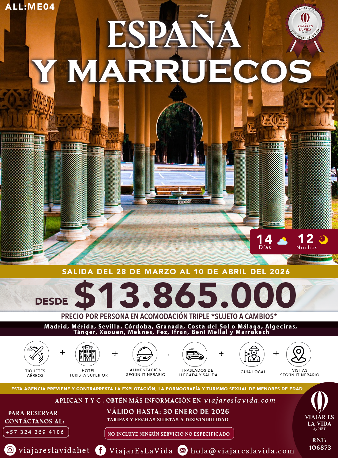 RUTA DE CULTURAS: ESPAÑA Y MARRUECOS SEMANA SANTA 2026 ALL:ME04