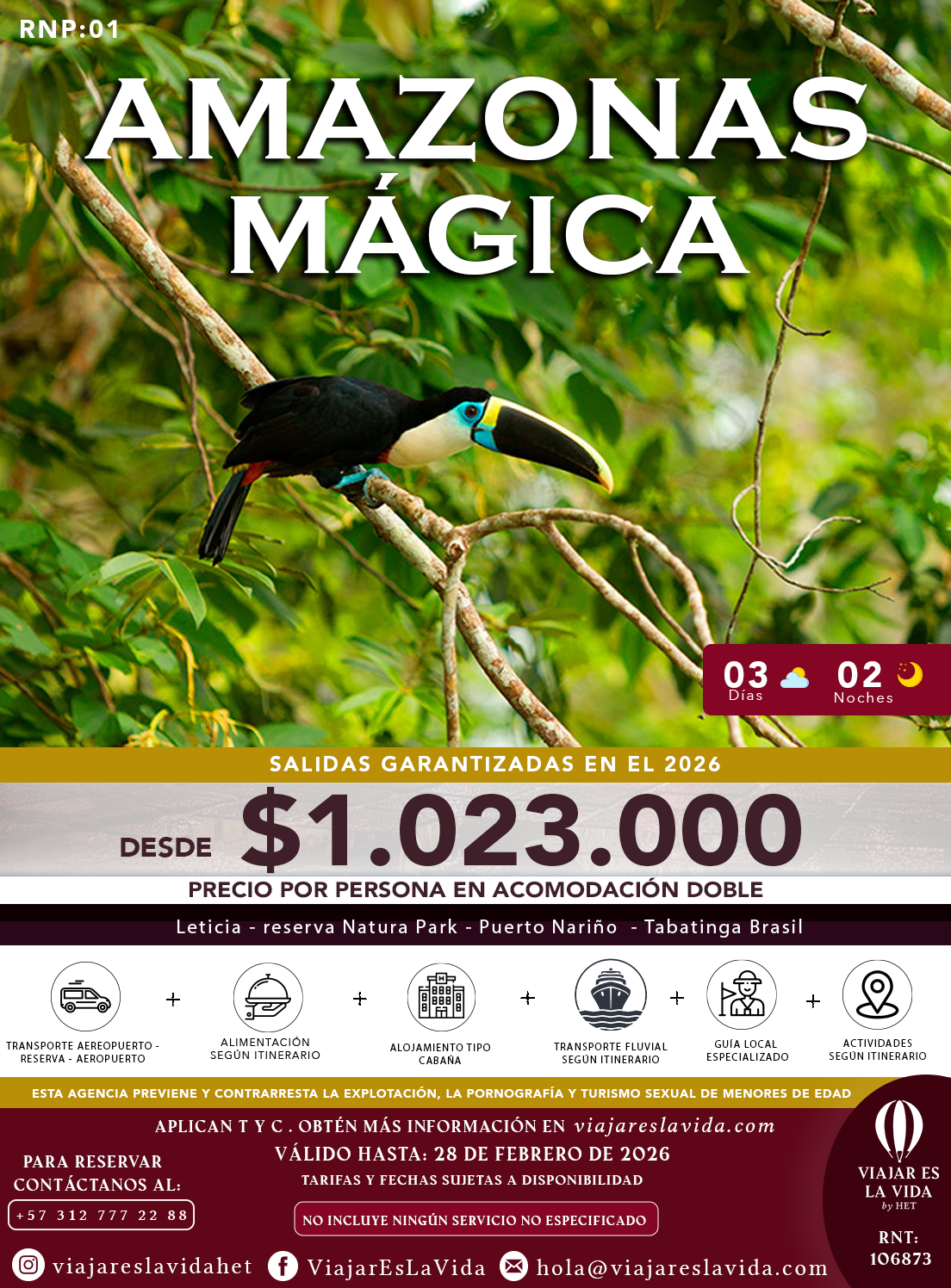 Precio por persona desde: $1.023.000 COP a partir de dos personas.