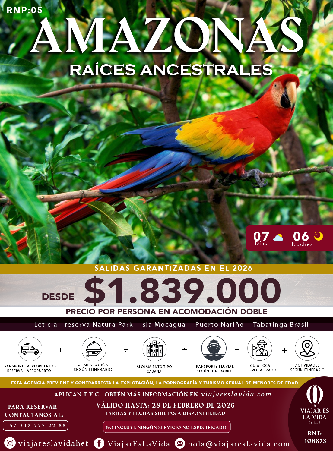 Precio por persona desde: $1.839.000 COP a partir de dos personas.