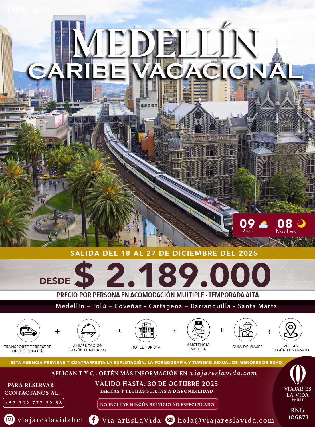 MEDELLIN CARIBE VACACIONAL (9D 8N) TMR:E13