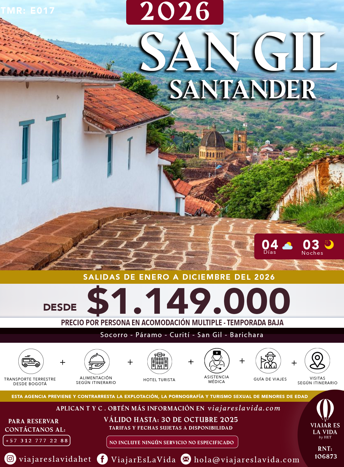 2024 Favor leer cuidadosamente el siguiente documento, mediante el cual ejerce su derecho y deber de conocer los términos generales de su viaje (servicios, paquetes turísticos, transporte, manejo del equipaje, objetos personales, asistencia y cláusulas de responsabilidad), a las que adquiere usted como viajero; así como acepta haber sido informado y por consiguiente adquiere nuestros servicios turísticos. En primer término, aclaramos que la Agencia de VIAJES VIAJAR ES LA VIDA SAS está sujeta al régimen de responsabilidad que establece la Ley 1558 del 2012, el Decreto 2438 del 2010 y demás decretos reglamentarios. La Agencia de Viajes VIAJAR ES LA VIDA presta servicios de paquetes turísticos para el viajero que incluyen transporte, alimentación, visitas, alojamiento y etc. Sin embargo, VIAJAR ES LA VIDA se responsabiliza de forma limitada ante los viajeros por cada uno de los servicios ofrecidos en el programa. VIAJAR ES LA VIDA siendo identificado como el operador de cada plan turístico tiene la responsabilidad de velar por el bienestar de los pasajeros y el cumplimiento de todos los servicios ofrecidos, así como de brindar la asistencia necesaria (dudas, orientaciones, horarios, etc.) a cada uno de los pasajeros. VIAJAR ES LA VIDA se compromete a velar por la calidad de los servicios prestados con cada uno de nuestros pasajeros. INFORMACIÓN DEL VIAJE: VIAJAR ES LA VIDA ofrecerá en todos los viajes una reunión de despedida donde se encuentran todos los viajeros, ofreciendo la información necesaria y las recomendaciones para tener en cuenta en su viaje. La fecha de la reunión es el mismo día de la salida en el punto de encuentro y el lugar se informará un día antes de la fecha de salida del viaje. Es responsabilidad del pasajero leer cuidadosamente las recomendaciones para ejercer su derecho y deber de estar informado de cada detalle de su viaje. SALIDAS: VIAJAR ES LA VIDA maneja salidas familiares y / o grupales, el pasajero debe tener en cuenta que las salidas grupales se logran con un mínimo de personas y al no completar esa cantidad mínima VIAJAR ES LA VIDA está en facultad de hacer modificaciones sobre el viaje, poniendo por supuesto como prioridad la comodidad y tranquilidad de cada uno de los pasajeros. Es importante tener en cuenta que, en caso de no completar el mínimo de personas para efectuar la salida, las condiciones de viaje pueden cambiar ya que se puede realizar el servicio privado o cambio de destino, en caso de ser así se informara con antelación al pasajero las nuevas condiciones y precios del programa y en caso de aceptar dichos cambios estos costos son responsabilidad del pasajero. ACOMPAÑAMIENTO: Todas las salidas que maneja VIAJAR ES LA VIDA tiene acompañamiento de un Guía turístico, Coordinador de Viajes y/o Conductor desde Bogotá D.C., y durante todo el recorrido; sin embargo, el pasajero debe tener en cuenta que dicho acompañante no se hace responsable por objetos personales, de valor o dinero de ningún pasajero. En caso de que el Guía turístico, Coordinador de Viajes y/o Conductor por su propia voluntad acceda a guardar dichos objetos es 100% responsabilidad del Guía turístico, Coordinador de Viajes y/o Conductor y VIAJAR ES LA VIDA no se hace responsable por daños o perdidas de ningún tipo, ni objetos dejados en el transporte y/u hoteles. SERVICIOS ADICIONALES: Algunos receptivos y/o servicios adicionales pueden ser adquiridos directamente en la agencia el día de salida del tour el cual tendrá un precio establecido de forma estimada dentro del programa, siempre y cuando se pertenezca a una salida de grupo, de lo contrario VIAJAR ES LA VIDA recomienda adquirir el servicio deseado directamente en el destino. NOTA: Tenga en cuenta que al adquirir el opcional en el lugar de destino los precios pueden variar y VIAJAR ES LA VIDA no garantiza un precio estándar. EQUIPAJE: El pasajero es el ÚNICO responsable por el manejo de sus objetos personales, dinero, objetos de valor, documentación personal, aparatos electrónicos que lleve durante el viaje. Debe tener en cuenta que durante todo el recorrido están bajo su custodia, por lo cual VIAJAR ES LA VIDA no se hace responsable en ninguna circunstancia por perdidas, hurtos, olvidos en hoteles, en lugares de visita, parques y/o buses, vans o cualquier medio de transporte etc. ALOJAMIENTO: Los servicios prestados por los hoteles están determinados según la categoría turística correspondiente y se entiende que el pasajero ha sido informado y acepta las condiciones de alojamiento brindadas en el programa seleccionado. En cualquier caso, de salidas grupales, estos deben tener en cuenta que internacionalmente se maneja el check-in a las 03:00 pm y el check-out a las 12:00 pm del día para evitar sobrecostos e inconvenientes. La acomodación según todos nuestros planes turísticos puede ser doble, triple, cuádruple o quíntuple; en caso de preferir acomodación sencilla debe consultar con uno de nuestros asesores el valor adicional que aumenta la misma el cual deberá ser asumido por el cliente. TARJETA DE ASISTENCIA AL VIAJERO: Es disposición general que cualquier viajero este amparado por una asistencia médica es por esto por lo que VIAJAR ES LA VIDA incluye en todos sus planes turísticos la tarjeta de asistencia médica que cubre: Asistencia médica por accidente o por enfermedad, asistencia en hotel por accidente o enfermedad, remuneración por robo de documentos (Hurto Calificado) no completo, etc., todo esto que llegue a ocurrir durante el viaje adquirido. Es obligación de todo pasajero tomar la tarjeta de asistencia médica que brinda VIAJAR ES LA VIDA de lo contrario no se le permitirá adquirir un plan turístico. CONDICIONES DE LOS PROGRAMAS: 1. Es responsabilidad y obligación del cliente leer cuidadosamente los servicios que incluye y No Incluye el valor del plan turístico. Los impuestos y tarifas administrativas generalmente están incluidos en el precio del pro