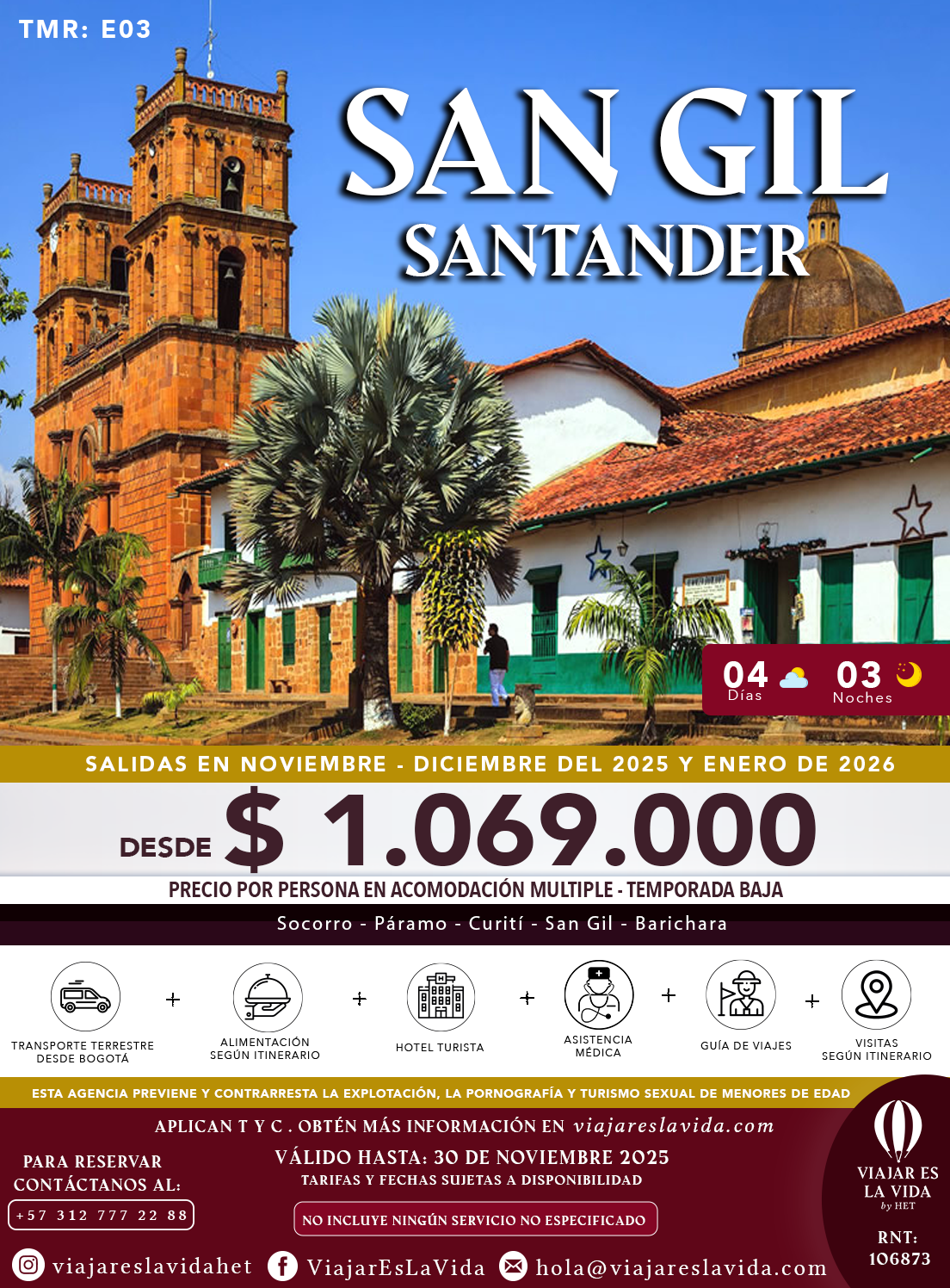 SAN GIL (SANTANDER) (4D 3N) TMR:E03