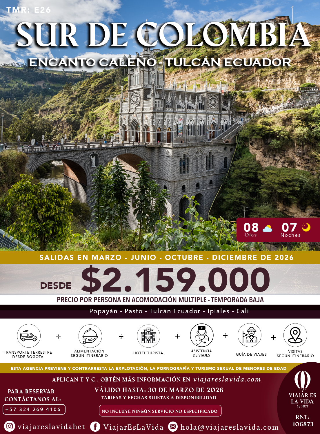 SUR DE COLOMBIA Y ENCANTO CALEÑO 2026 MARZO A DICIEMBRE TMR:E26