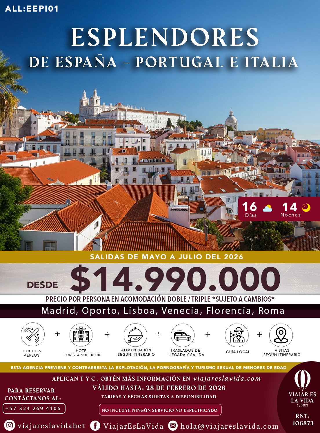 ESPLENDORES DE ESPAÑA, PORTUGAL E ITALIA ALL:EEPI01
