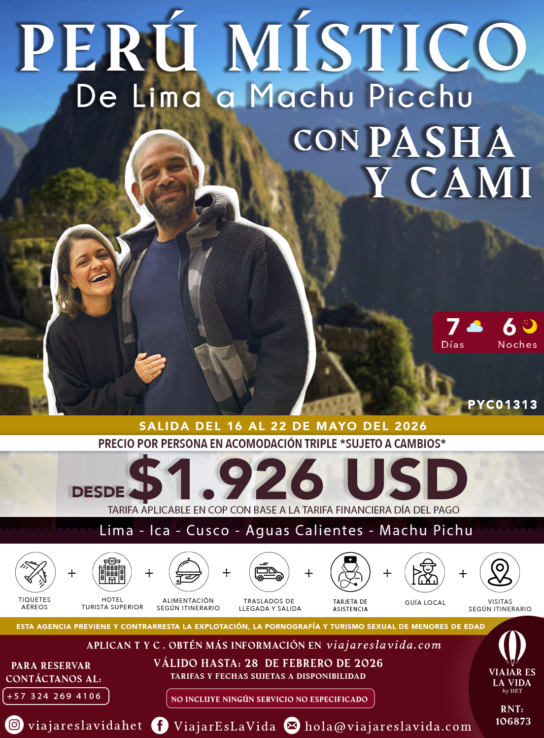 PERÚ MÍSTICO DE LIMA A MACHU PICHU CON PASHA Y CAMI MAYO 2026 PYC:01314