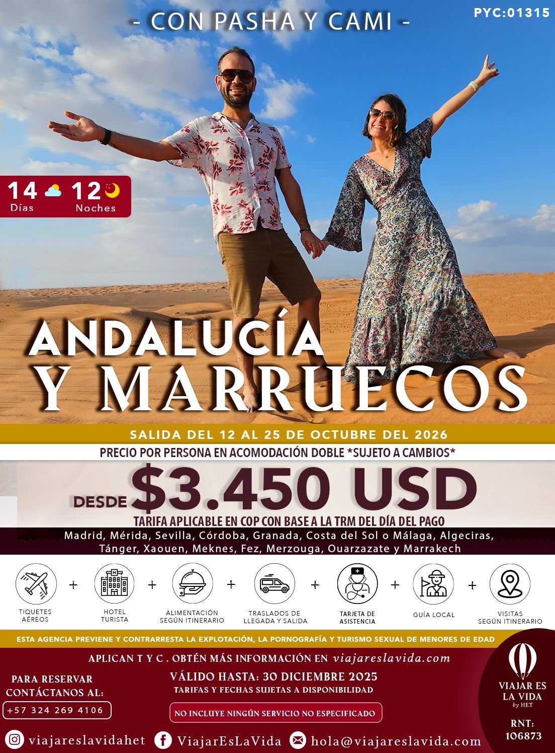 ANDALUCÍA Y MARRUECOS CON PASHA Y CAMI OCTUBRE 2026 PYC:01315