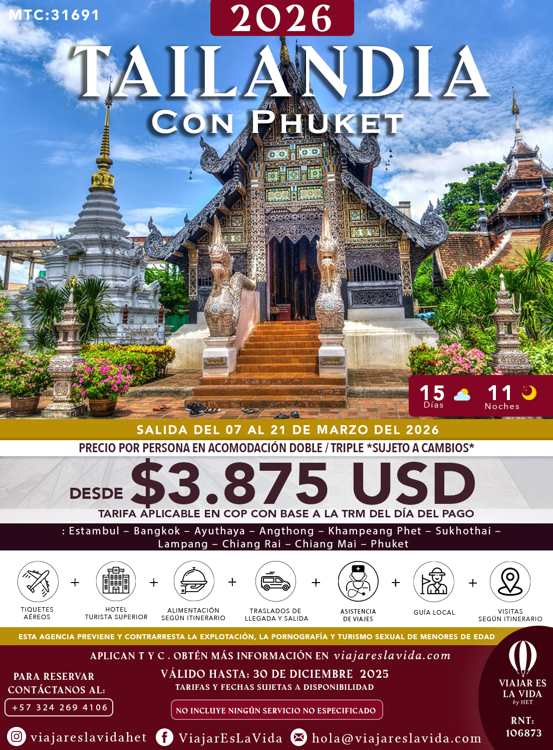 TAILANDIA Y PHUKET MARZO 2026 MTC:31691