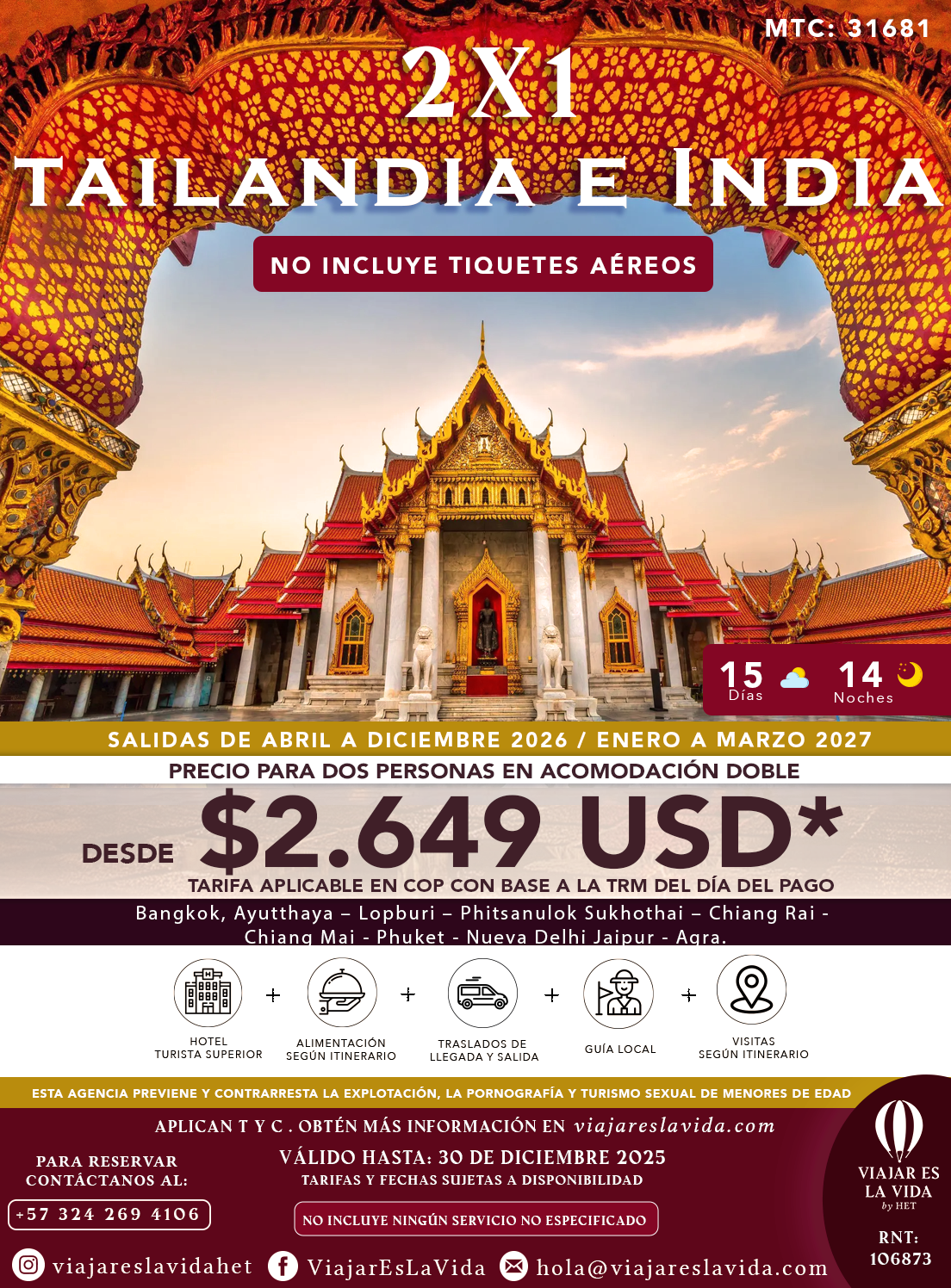 TAILANDIA CON PHUKET & INDIA 2X1 2026-27 MTC:31681