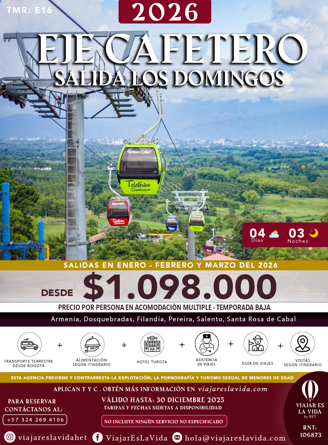 EJE CAFETERO 2026 SALIDAS DOMINGOS TMR:E16