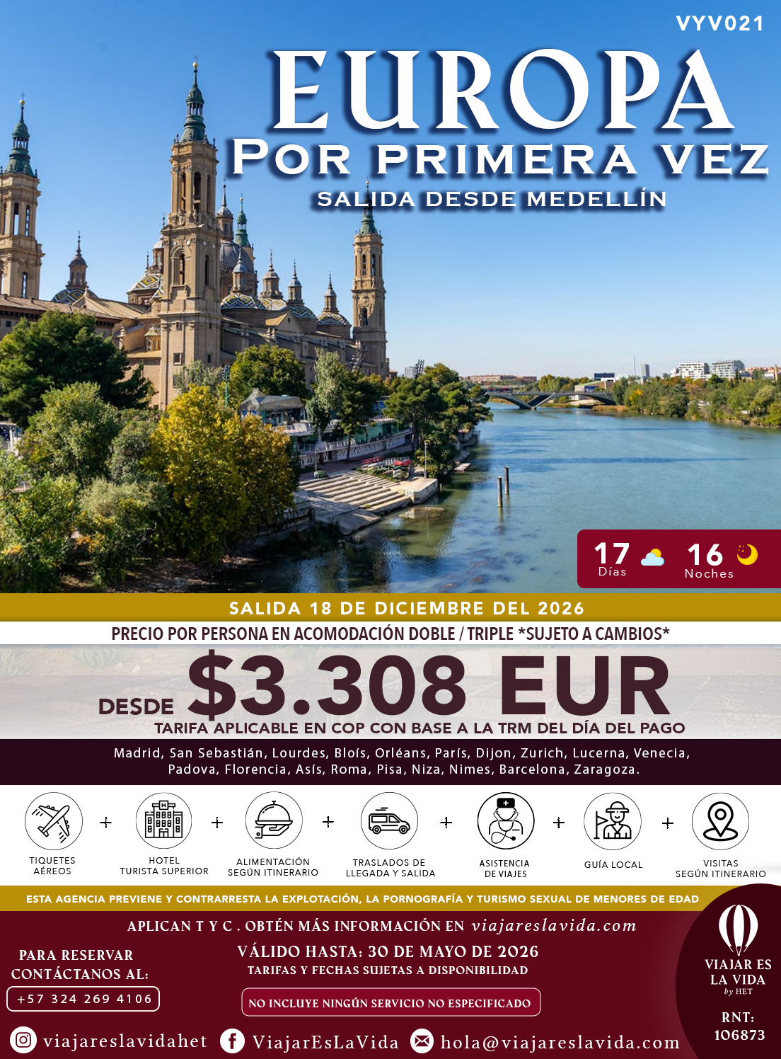 EUROPA POR PRIMERA VEZ LOS VIERNES SALIENDO DE MEDELLÍN Y BOGOTÁ VYV:16