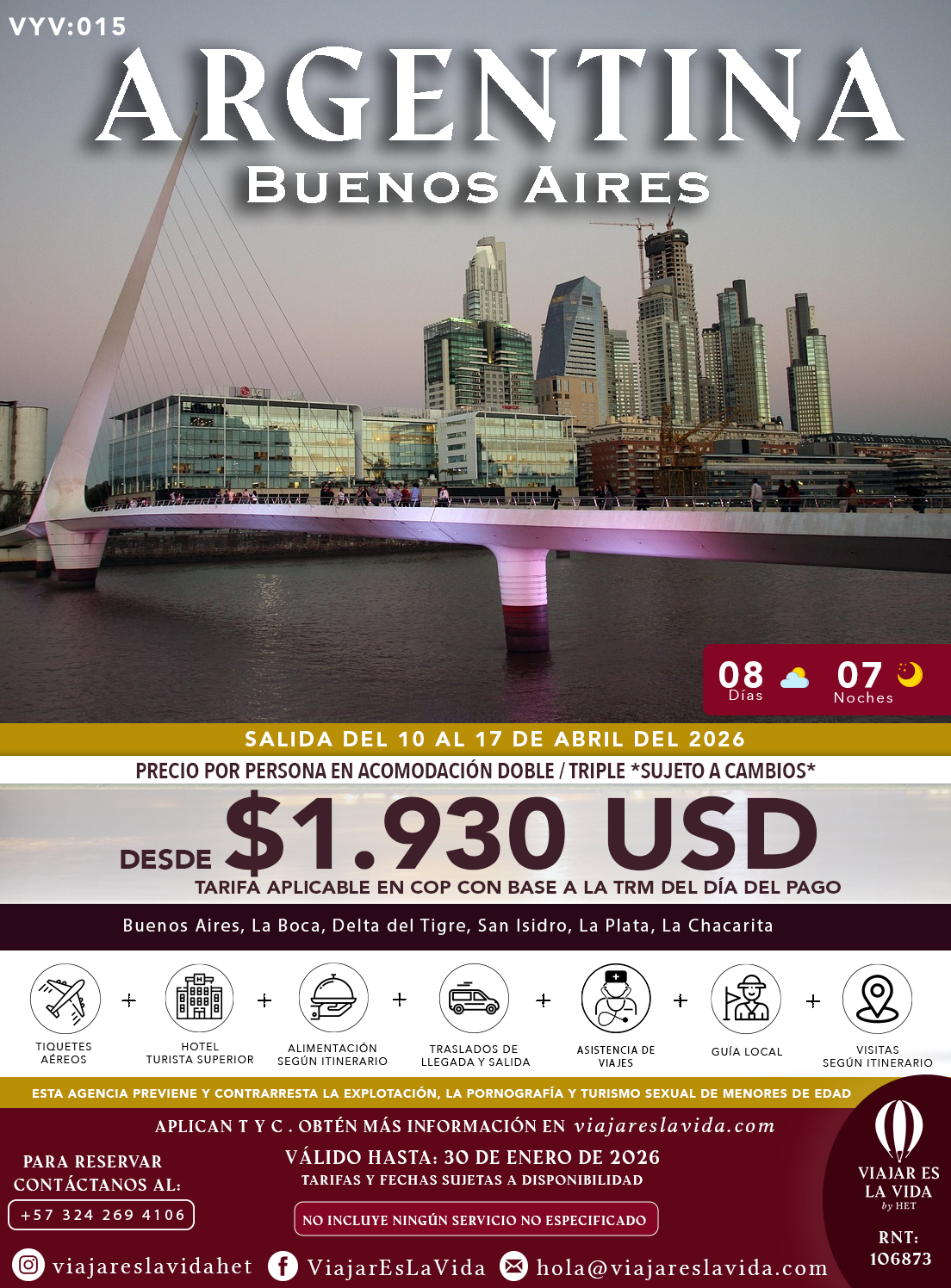 ARGENTINA (BUENOS AIRES) ABRIL SALIENDO DE BOGOTÁ VYV:015